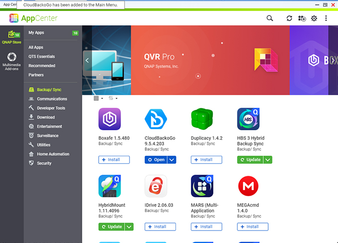 在應用程序中心中,選擇備份/同步選項。找到CloudBackoGo圖標,單擊安裝繼續