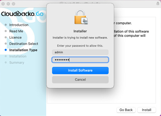 輸入您的密碼,然後單擊[安裝軟件]繼續。